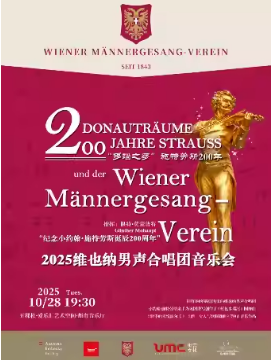 “多瑙之梦:施特劳斯200年”——维也纳男声合唱团音乐会 时间:2025.10.28 周二 19:30 场馆:北京市 | 五棵松·爱乐汇艺术空间·都市音乐厅 票价:180/280/380/480 微信订票:18515362586 电话订票:010-66552100,010-66552258