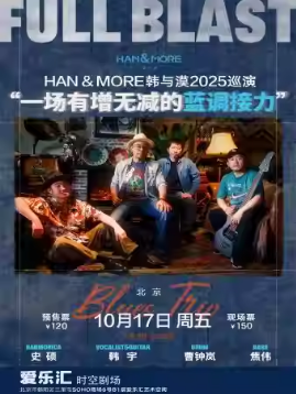 「Full Blast」一场有增无减的蓝调接力〡Han & More韩与漠2025巡演 时间:2025.10.17 周五 19:30 场馆:北京市 | 三里屯·爱乐汇艺术空间-时空剧场 票价:120 微信订票:18515362586 电话订票:010-66552100,010-66552258