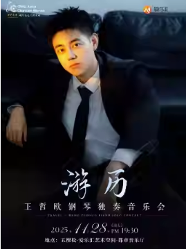 游历——王哲欧钢琴独奏音乐会 时间:2025.11.28 周五 19:30 场馆:北京市 | 五棵松·爱乐汇艺术空间·都市音乐厅 票价:100/180/280/380 微信订票:18515362586 电话订票:010-66552100,010-66552258